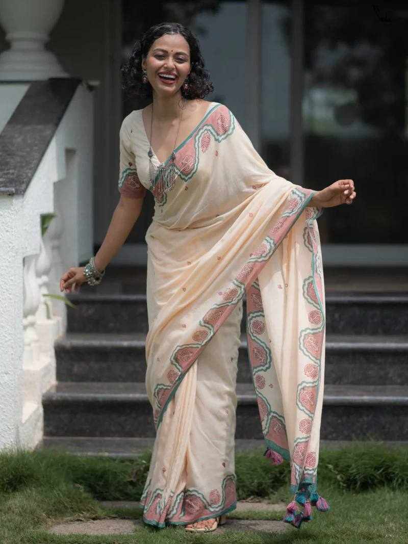 Saree Fabric: Premium Linen Cotton with beautiful digital print
