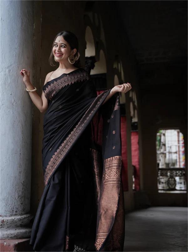 Reviews for MF 1950 BLACK BANARASI SOFT LICHI SILK SAREE