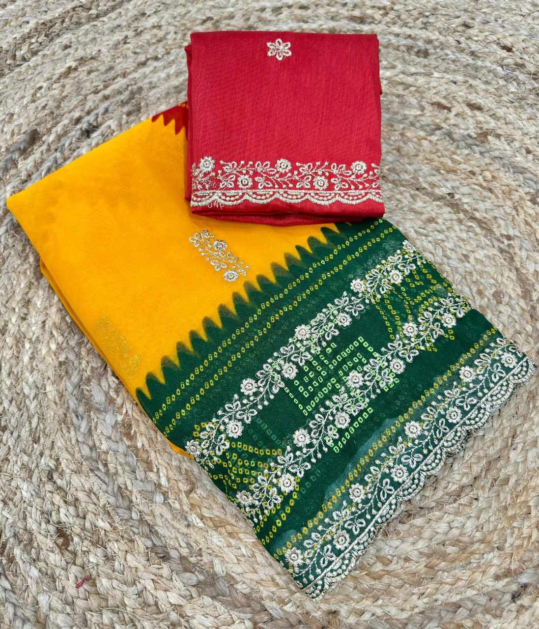 | Name : | PIYU P1052 LERIYA BANDHANI-1 Yellow-Green Saree |