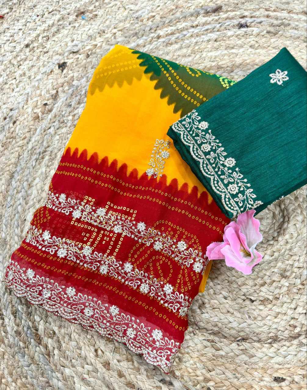 PIYU P1052 LERIYA BANDHANI-1 Yellow-Red Saree