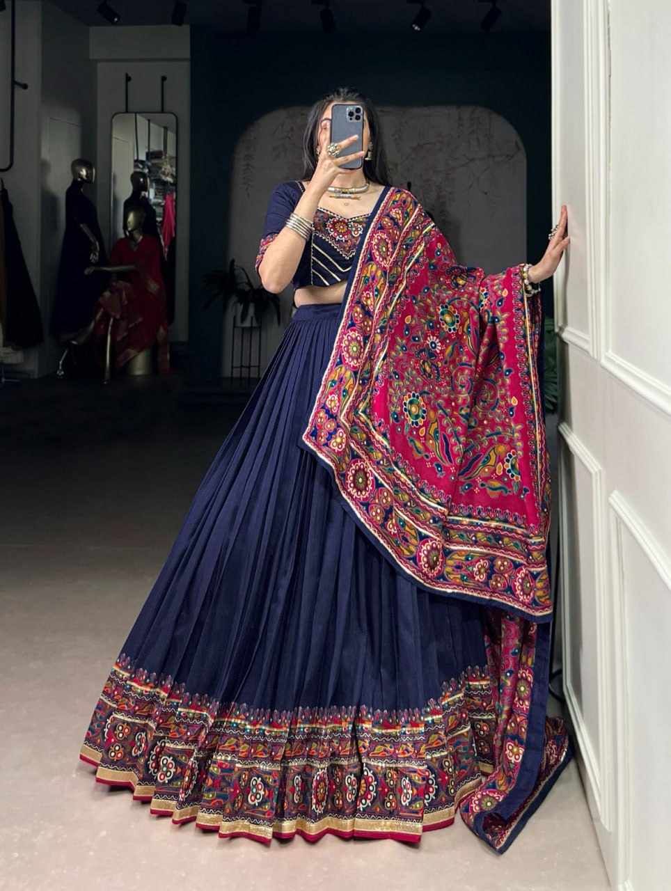 | Name : | PIYU 29-1 Silk Chaniya Choli With Viving Foil Navy Blue Lehnga |