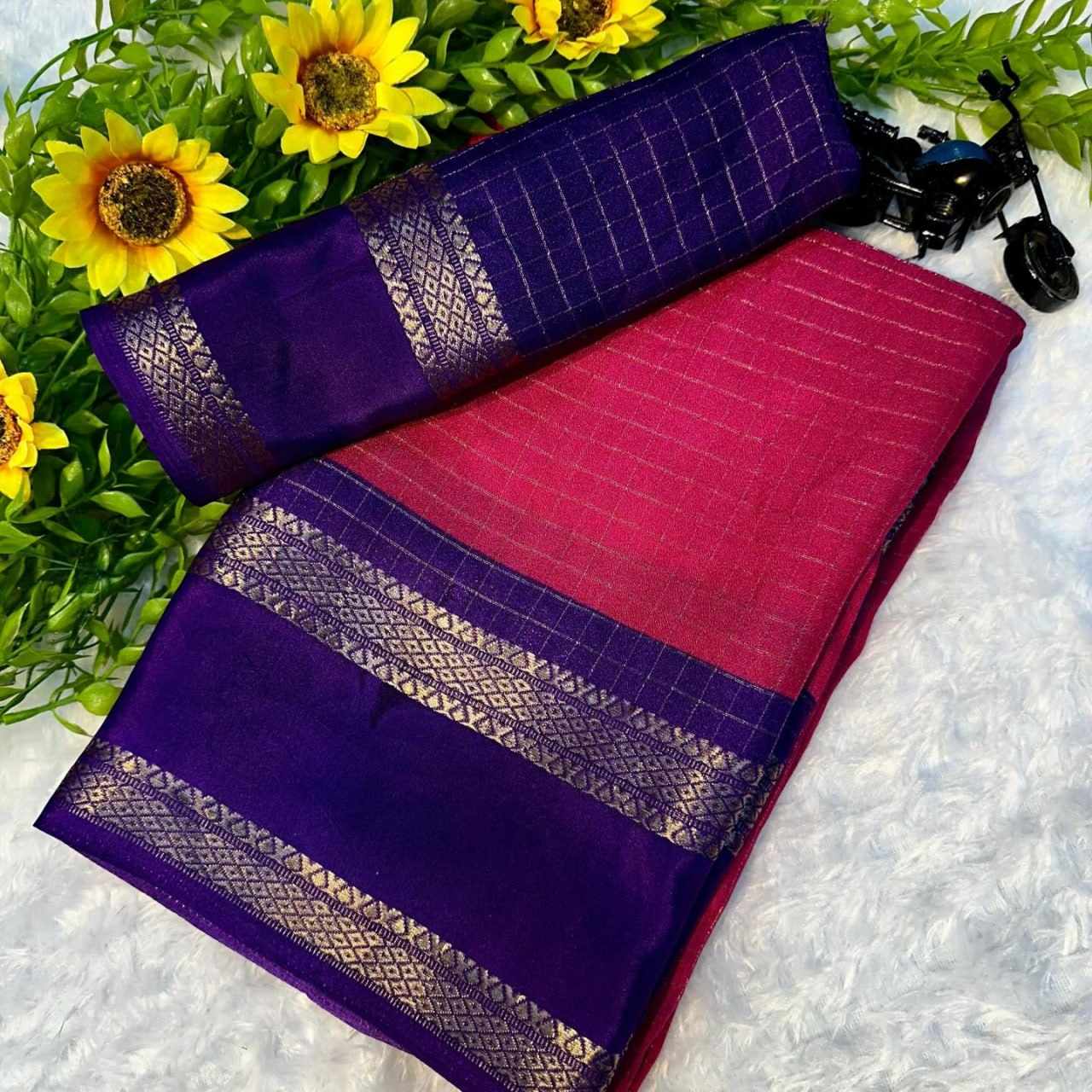 Saree Fabric : jeqard border with mill printed sarees design